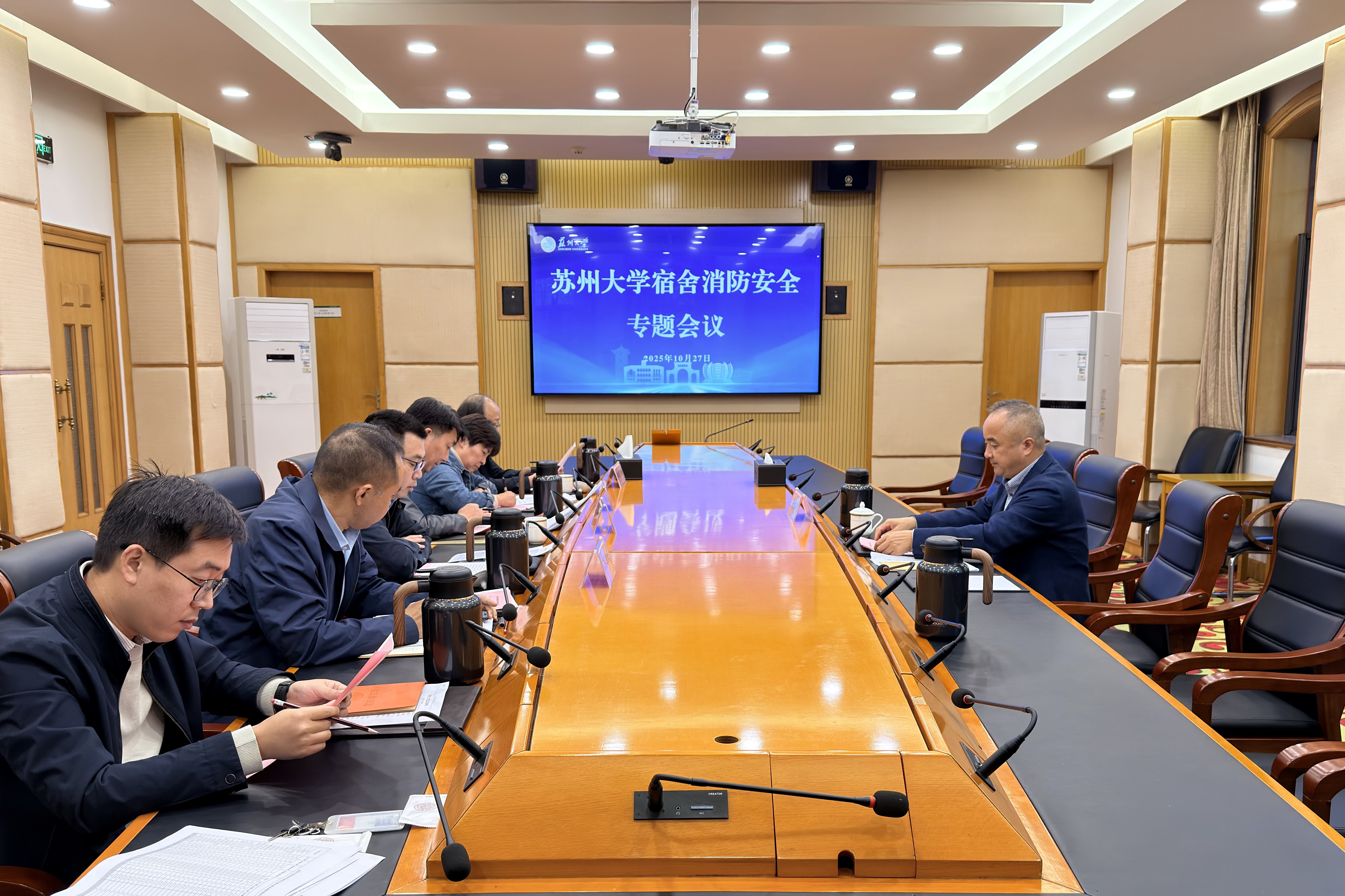 会议传达了上级文件精神,党委保卫部(保卫处)通报了当前宿舍消防安全工作情况,后勤管理处通报了近期宿舍安全卫生检查情况,参会单位就学校宿舍消防安全责任任务清单修订工作展开交流讨论。